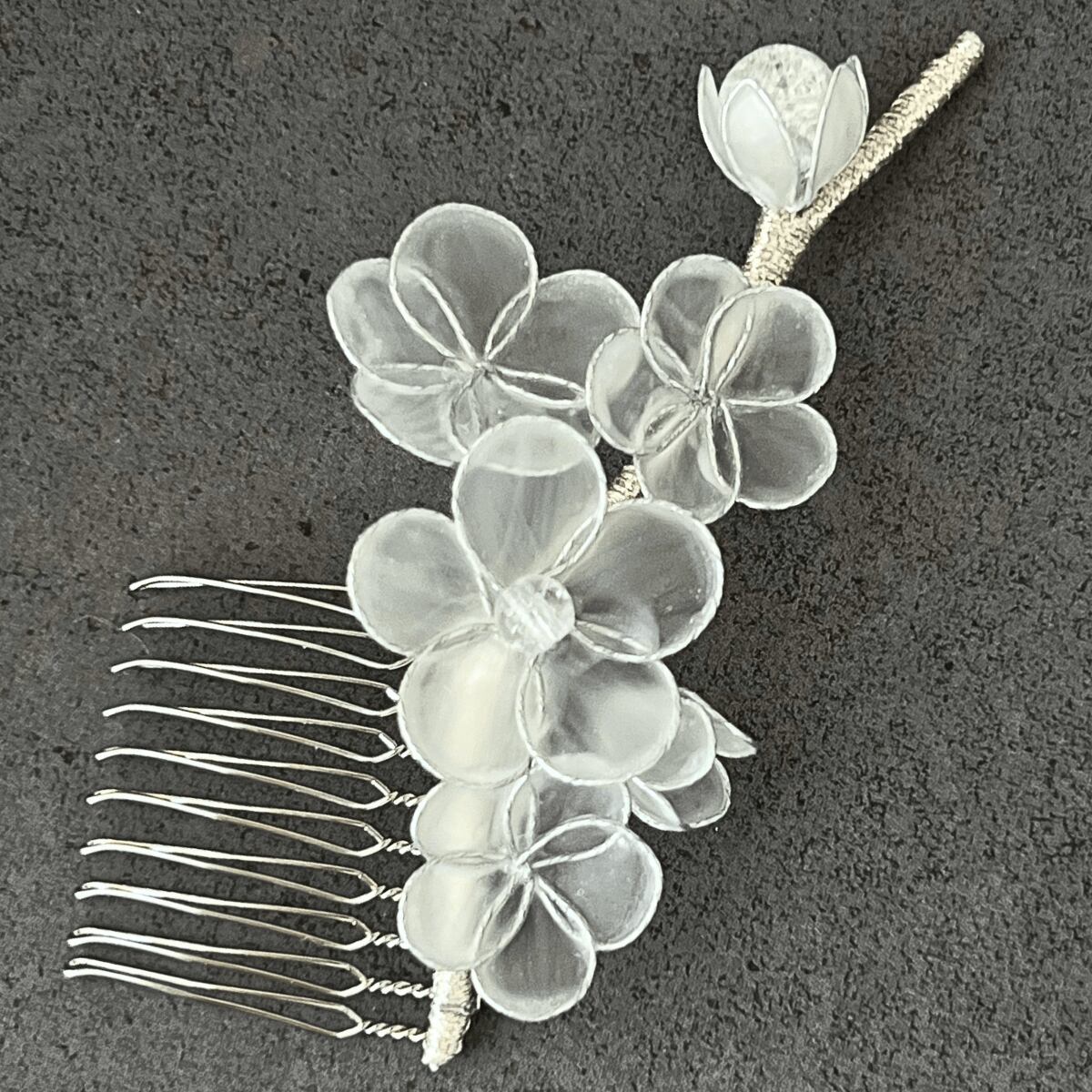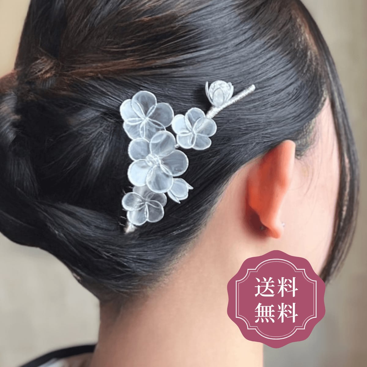 結婚式やお呼ばれの席にふさわしい、洗練されたデザインのかんざし。