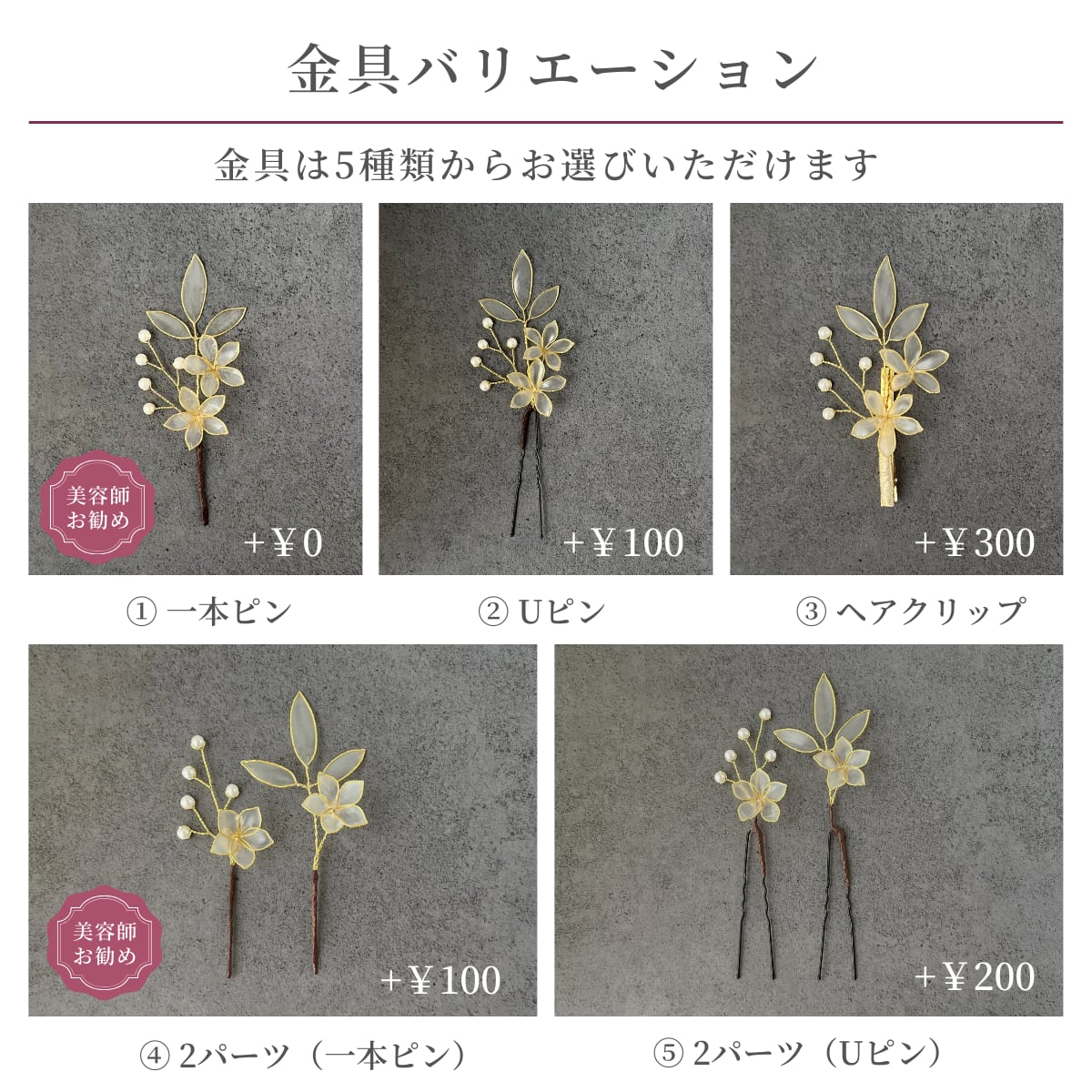 5種類の中から、お好きな金具を選択して下さい。