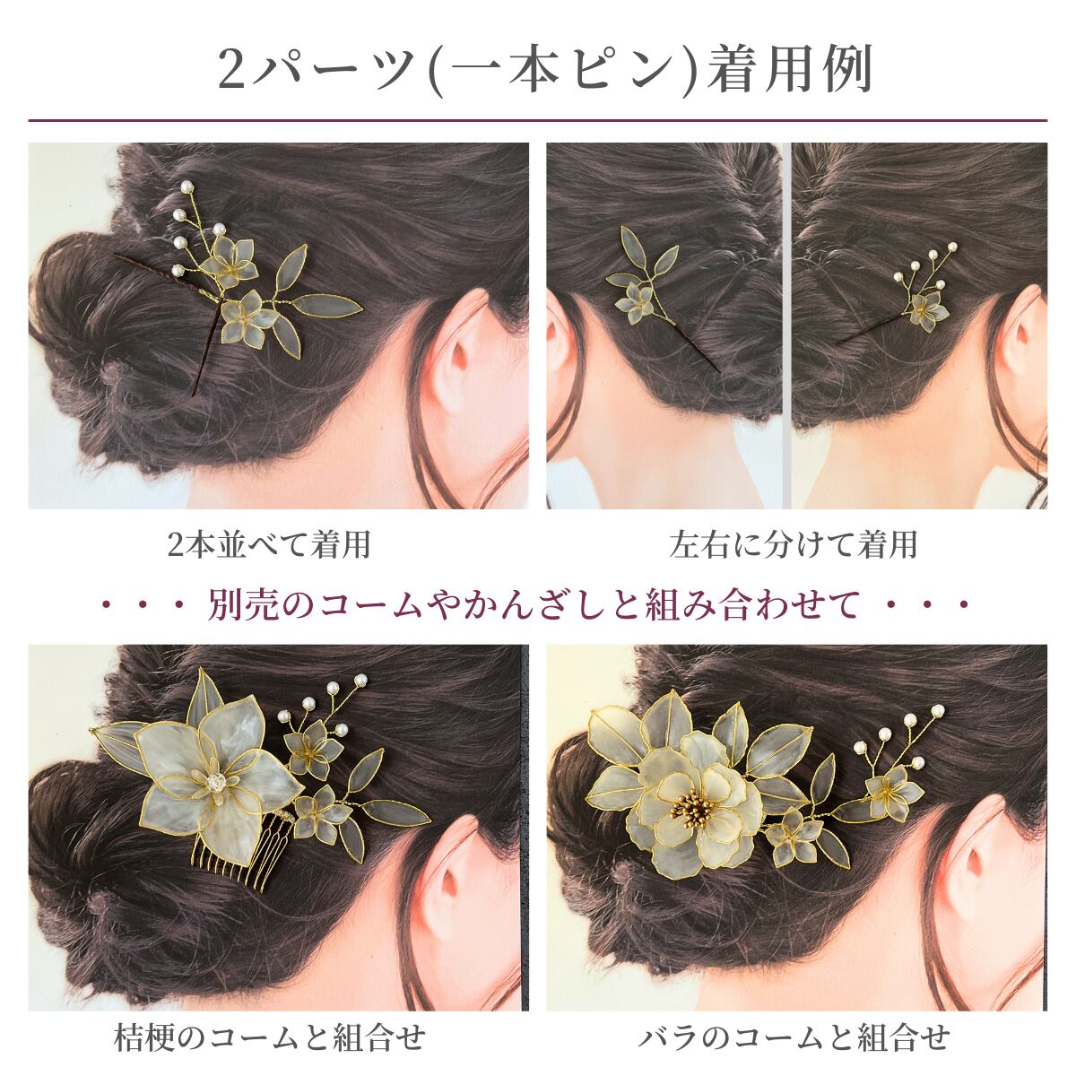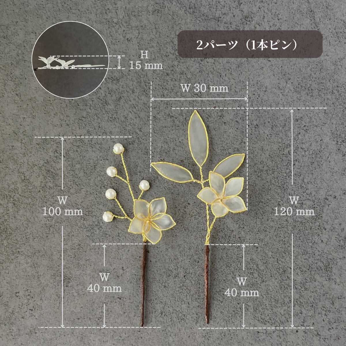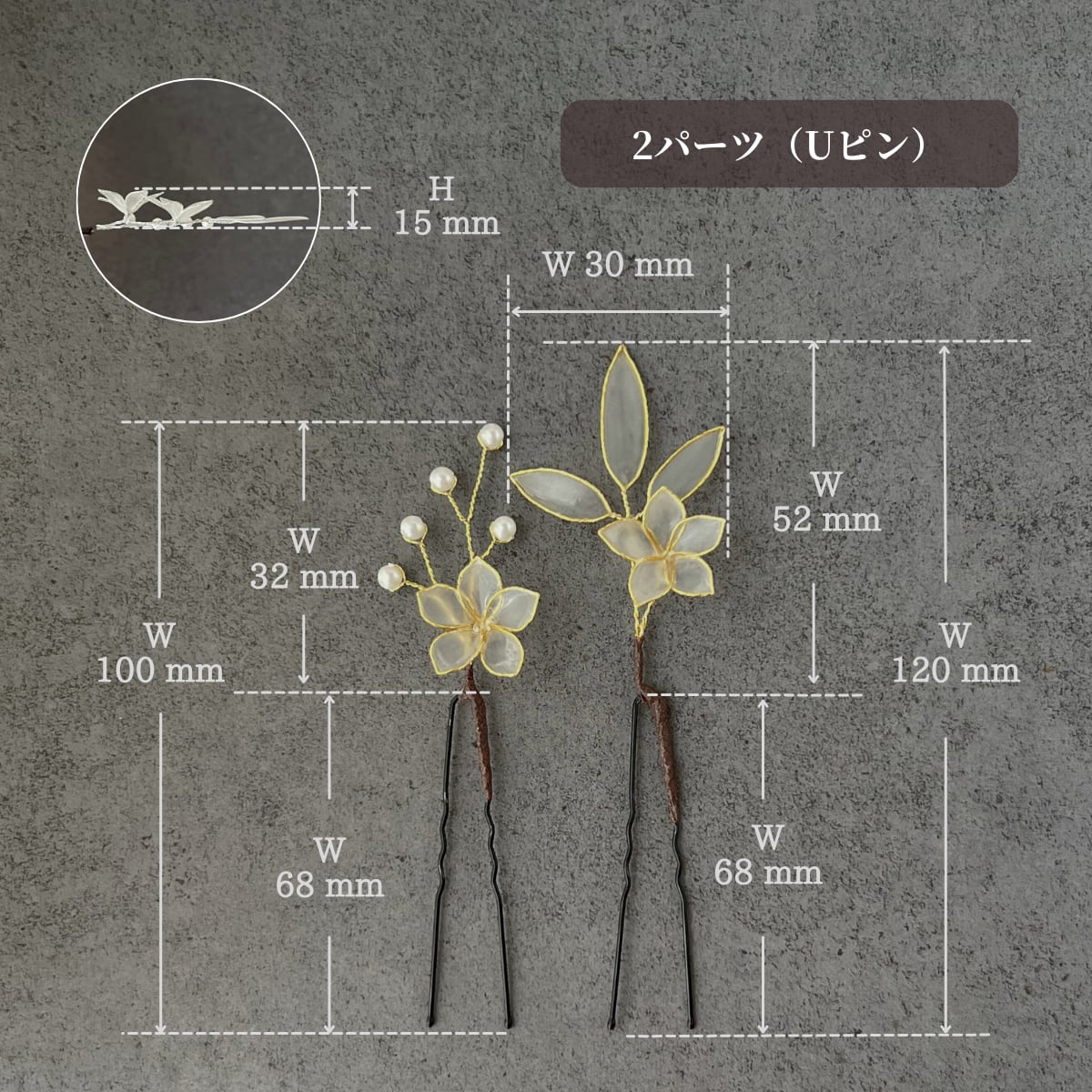 ・Uピン/一本ピン/ヘアクリップ/2パーツ仕立て(一本ピンorUピン)