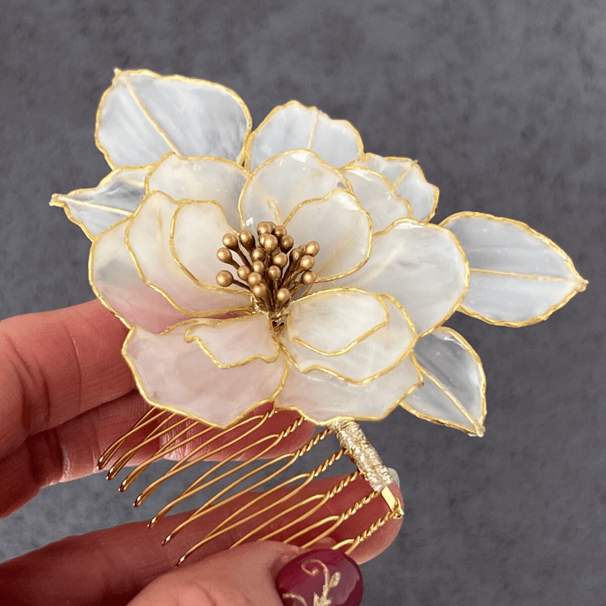 ❀ 白バラの花言葉 – 清らかな愛を纏う髪飾り ❀