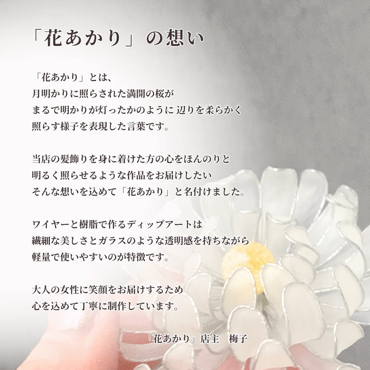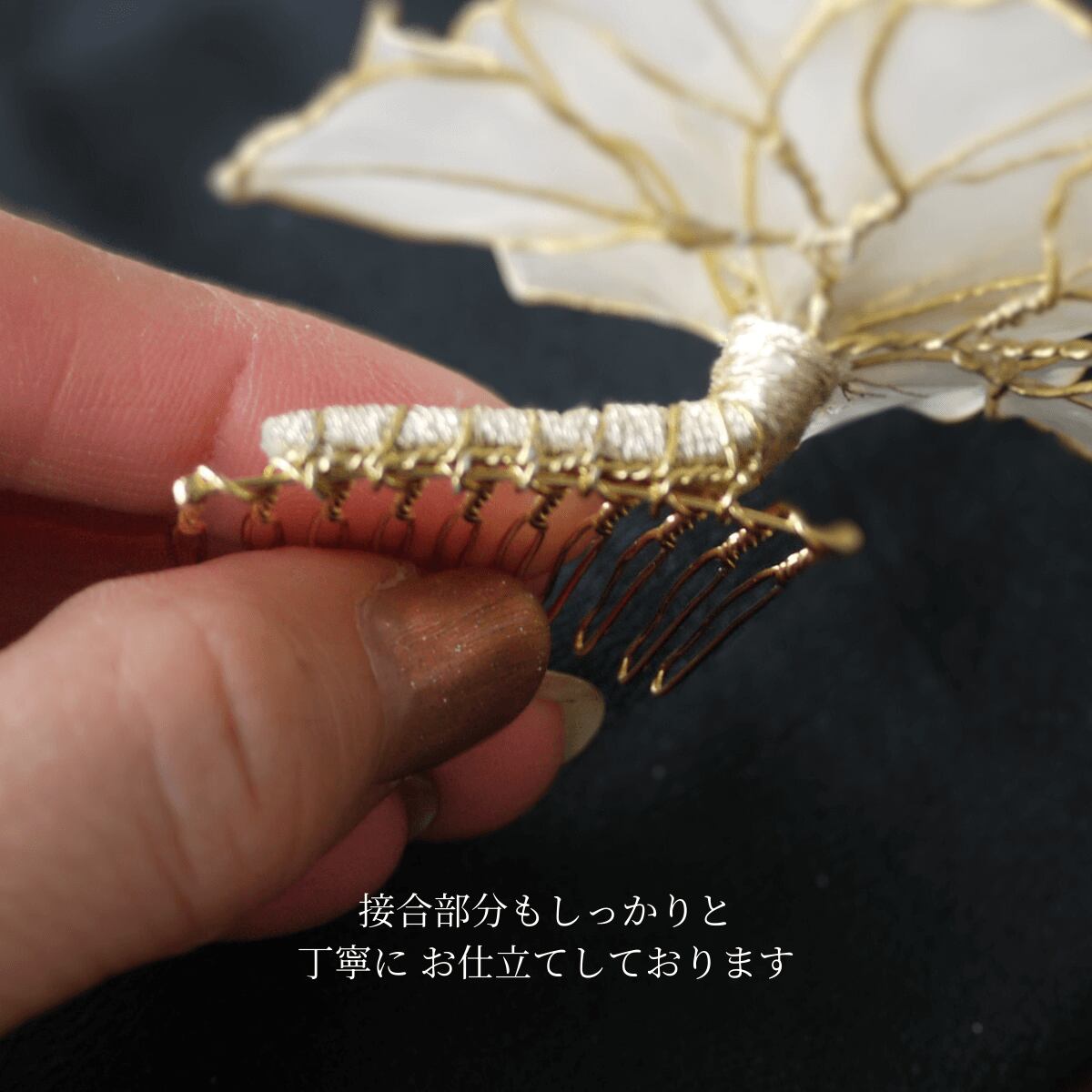 花びらは「ディップアート技法」による手作り。ワイヤーと樹脂を何層にも重ねることで、繊細な美しさと透明感、そして強度を兼ね備えています。