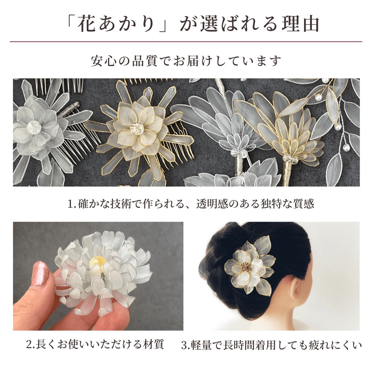 黒留袖や訪問着にぴったりの髪飾りは、結婚式やお呼ばれの席で母親や親族の装いを格上げする特別な一品。